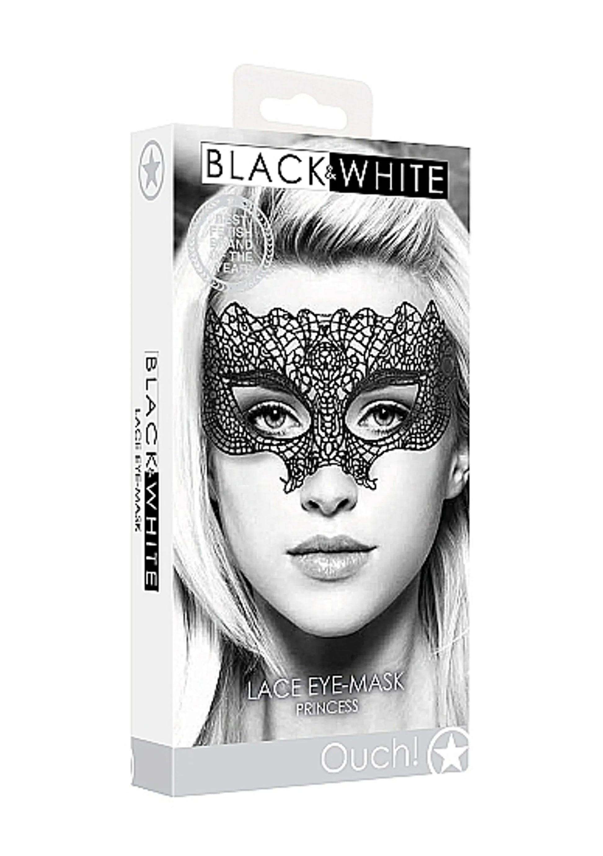 Ouch! Black and White Bondage line Lace Eye Mask Princess from Shots Toys. OUCH! Presents a series of 4 hand made, high quality, light weight and easy to wear masks, detailed with intricate modern Venetian inspired designs. Created with laser cutting technology from the finest, eco-friendly materials, these masks will really give you an air of seductive mystery! Two quality ribbons will secure the mask in place for long hours of comfortable wear or play and facilitate easy adjustment. The OUCH! Princess Black Lace Mask is an excellent choice for sensual play but also perfect for Proms, Weddings, Fashion Shows, Mardi Gras, Themed Parties, Masked Balls and Costume events etc. Dimensions package 6.69 inches by 3.54 inches by 0.98 inch. Weight package 1.09 ounces. Product dimensions 9.25 inches by 5.31 inches by 0.04 inch. Product weight 0.32 ounce. Materials Polyester. One size fits most. Categories: Bondage, Fetish, Kink, Naughty Role Play, Halloween Costumes, Sex Toys for Women. Shots - America. Best Fetish Brand of the year. 2023.