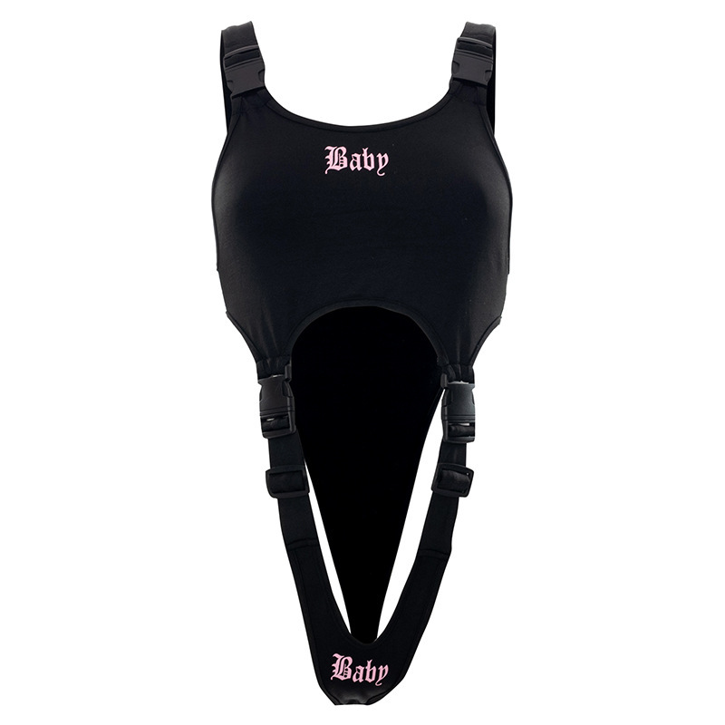 Ay cosa rica (Mono Sexy y a la Moda – Color Sólido, Estampado de Letras, Hebilla Decorativa, Ombligo al Descubierto, Tirantes Ajustables)