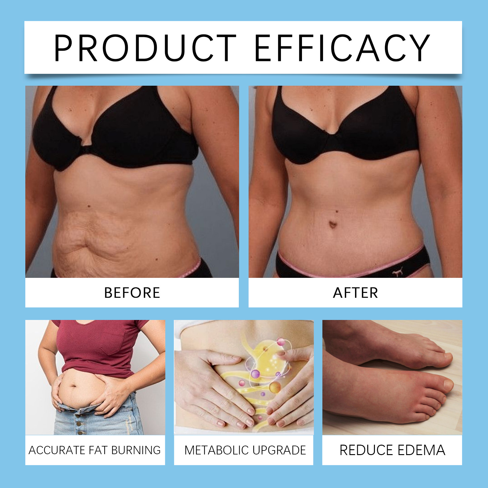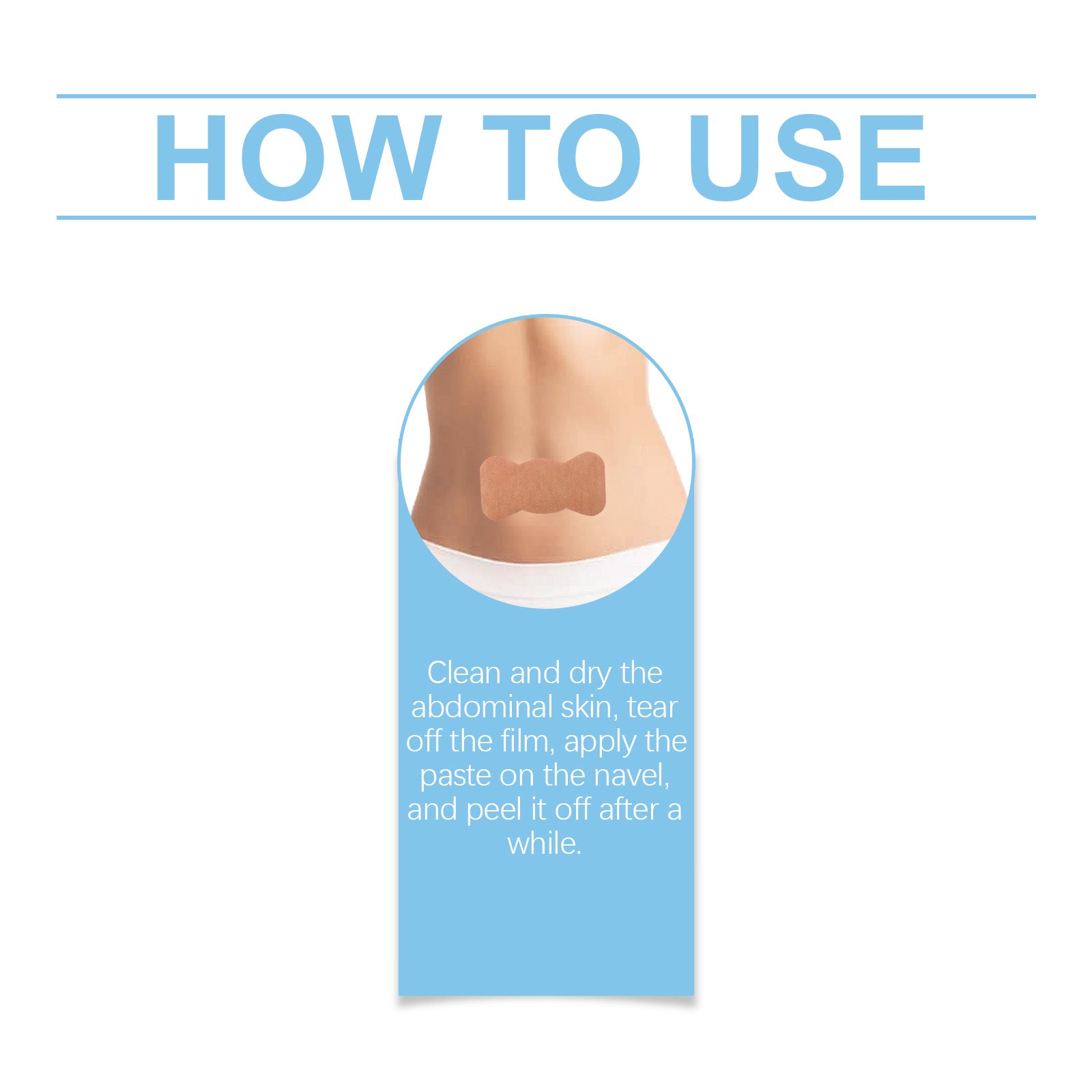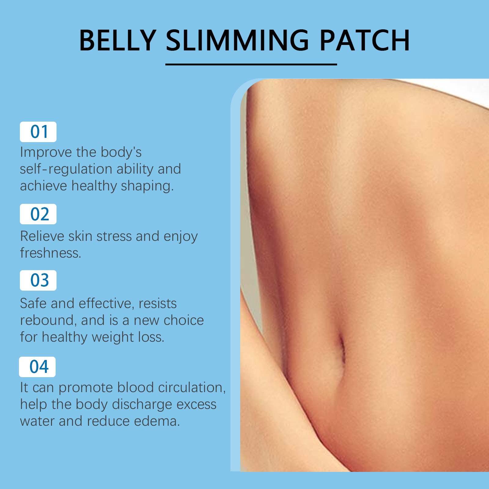 Our belly slimming patch contains wormwood, angelica and peach kernel. It activates local blood circulation, accelerates fat burning, and directly targets fat sites. The way to use it is simple: wash and dry the belly skin, peel off the film, apply the paste to the belly button, and peel it off after a while. It can also promote the body's metabolism, regulate lipid balance, and effectively convert excess energy.