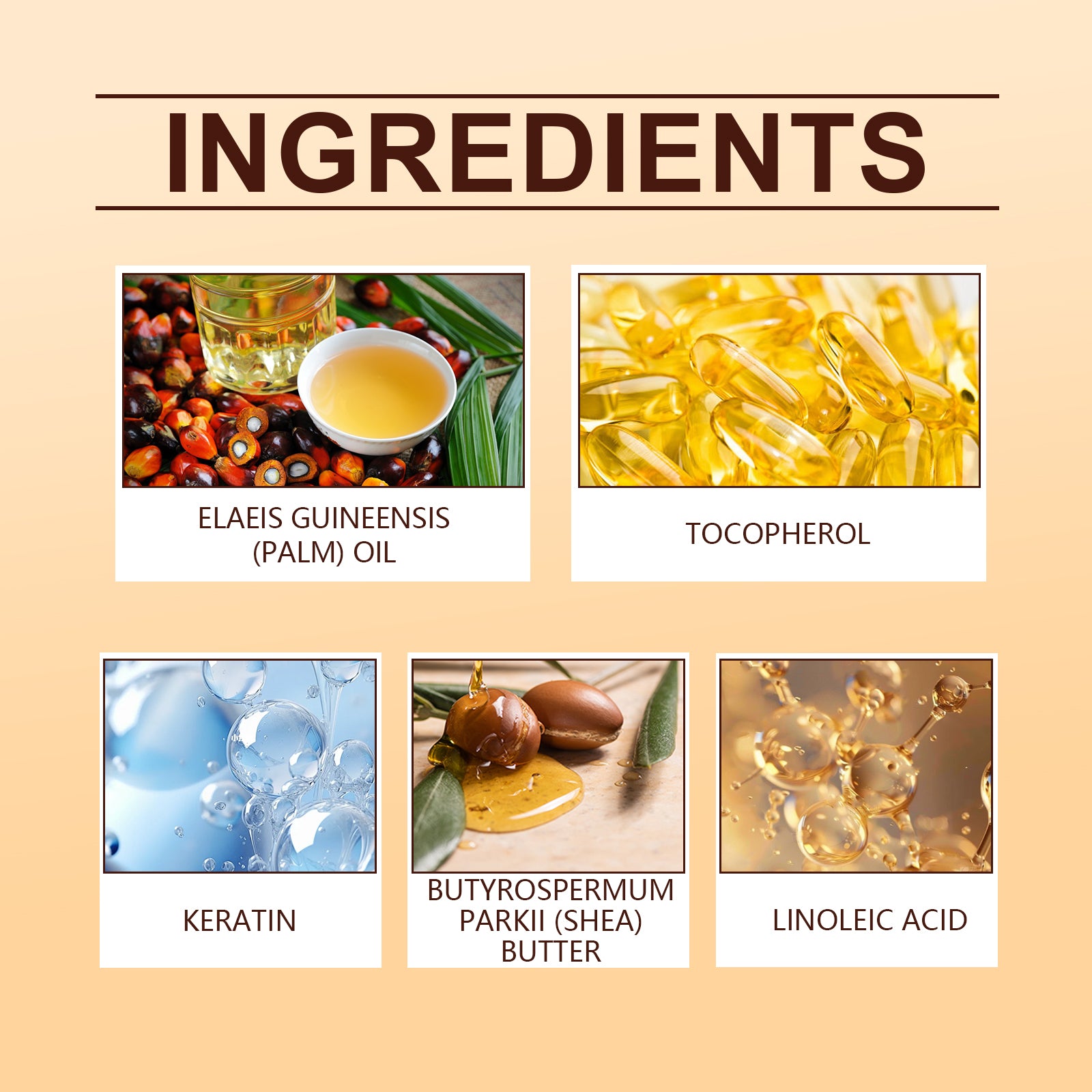 Our Batana Brightening Hair Oil is carefully formulated with keratin, shea butter and linoleic acid. Designed specifically for deep nourishment of hair and scalp. The usage method is extremely convenient: Take an appropriate amount of the product, apply it evenly to your hair, put on a plastic cap or tie up your hair and wait for 20 to 60 minutes. Finally, rinse it off with warm water. And it can improve microcirculation of the scalp and promote hair growth.