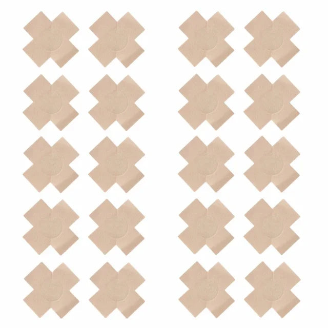 Experiencia Sexy y Caliente — 10 Pares (20 Piezas) Cubierta de Pezón en Forma de Cruz/X, Desechable y Autoadhesiva de Satén