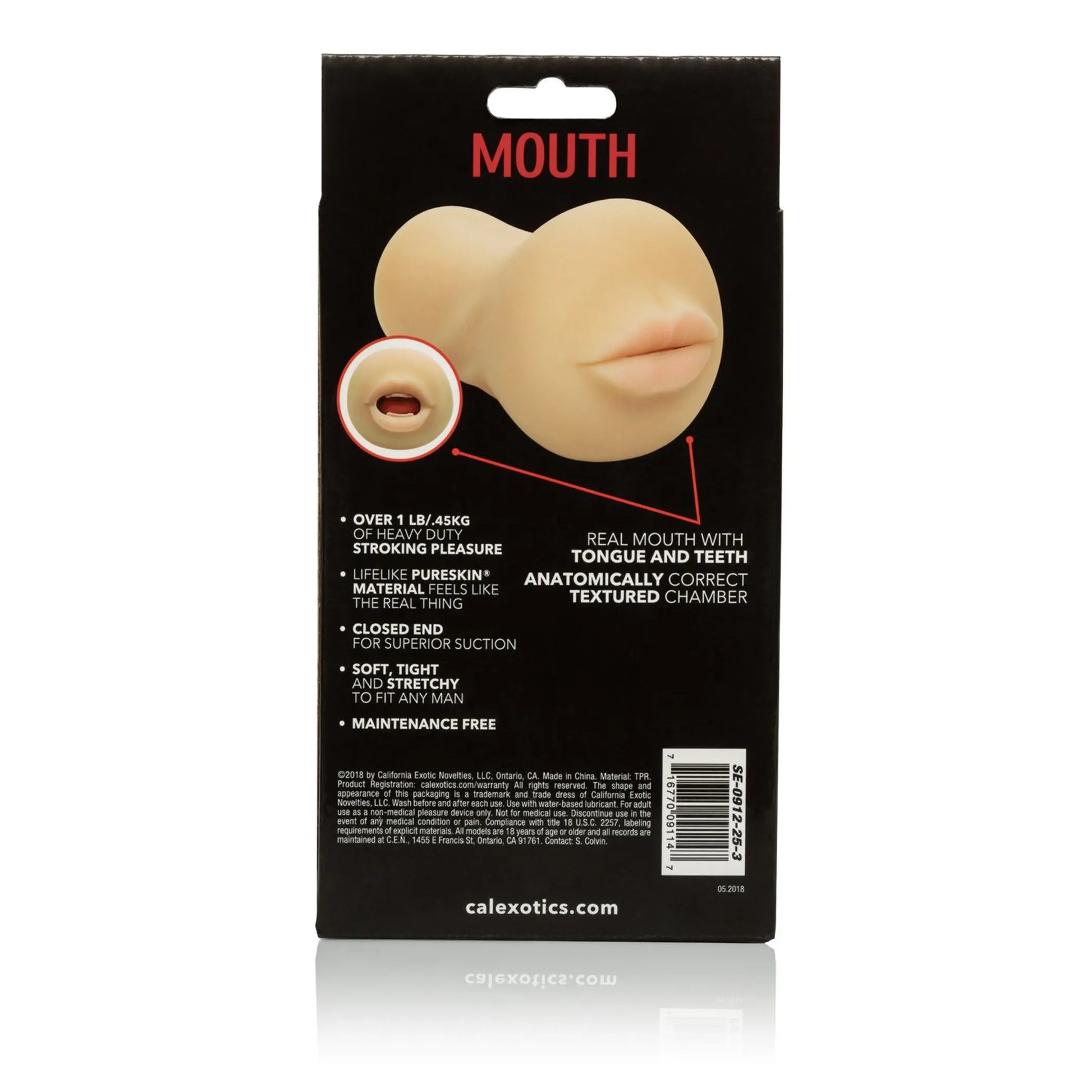 Stroke It Mouth Stroker from California Exotic Novelties. The Stroke It collection brings you the Mouth Stroking Sleeve, made to thrill with every extra tight stroke. Dive deep into over 1 pound of heavy duty Stroking pleasure with anatomically correct mouth and an extra tight, closed ended chamber. Our plump Stroker Sleeve is great for anyone wanting a little extra oomph in their solo play. Over 1 pound of Pure Skin Thermoplastic Rubber TPR material make for the truly heavy duty, pounding pleasure you have been craving. The indulgent Stroker has a textured, anatomically correct chamber for explosive stimulation. Use this close ended sleeve with ample lubrication for powerful suction worthy of your naughtiest fantasies. Pure Skin Thermoplastic Rubber TPR is a super soft, ultra stretchy material with a unique, life like feel delivering pure satisfaction in every Stroke. This durable Sleeve is easy to use, easy to clean and requires no special care. Prior to and after each use, wash sleeve internally and externally with warm water and soap, then disinfect with the Universal Toy Cleaner. Color Ivory, Light Skin Tone Beige. Materials Thermoplastic Rubber TPR. Features Phthalate Free. Allergens N/A. Measurements 7 inches by 3.75 inches masturbator. Weight bulk 20.2 ounces. Package 22.4 ounces. Package 3 inches by 4.5 inches by 8.5 inches. Categories: Male Masturbators, Sex Toys for Men, Solo Masturbators, Mouth Strokers, Masturbation Sleeves. 2023._x000D_