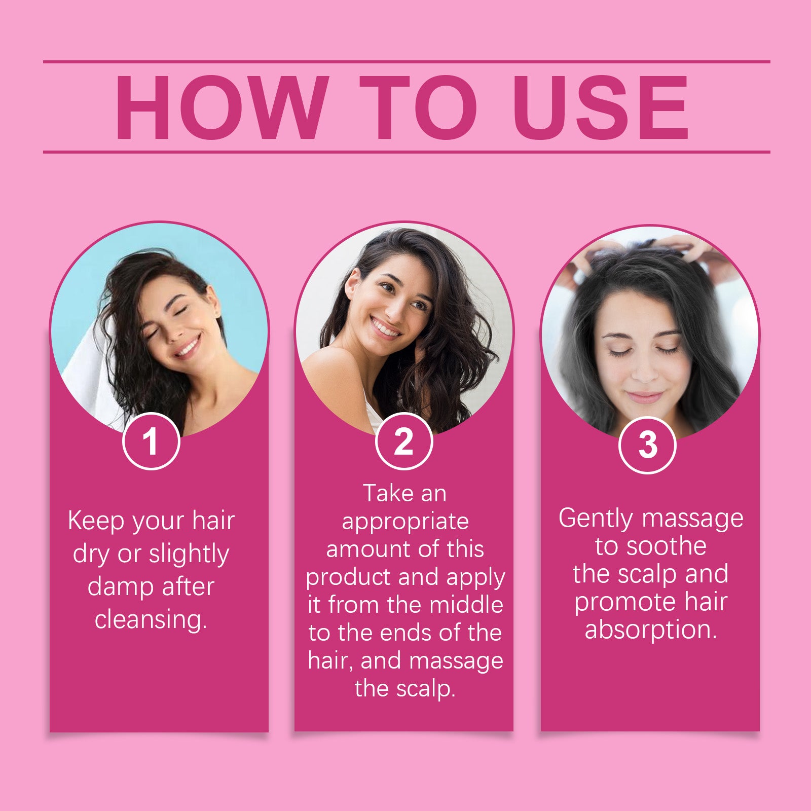 Our leave-in hair serum contains liquid paraffin and coconut oil. It can be used quickly without rinsing. Replenish your hair with nutrients and rejuvenate it. Its use is simple: keep your hair dry or slightly damp after cleansing. Apply an appropriate amount of this product from the middle to both ends of the hair, and massage the scalp, gently massage the scalp, and promote hair absorption. It can also make hair brighter and more radiant.